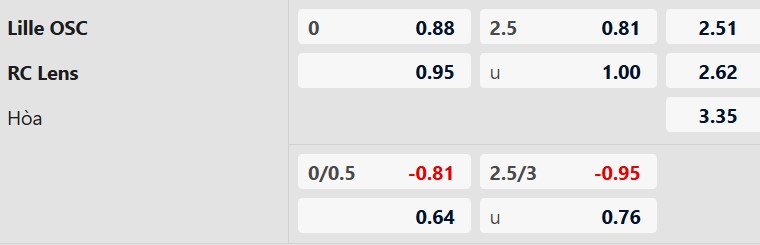 Thông tin tỷ lệ bóng đá Lille vs Lens: