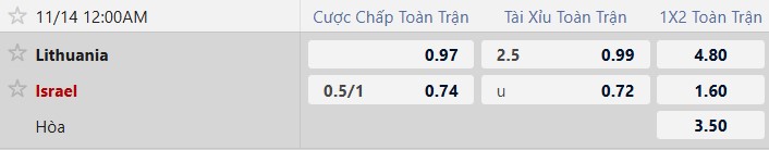 NHẬN ĐỊNH LITHUANIA VS ISRAEL, 00H00 NGÀY 14/11