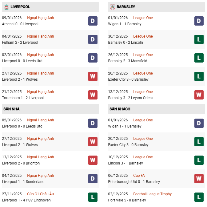 Barnsley lại đang chật vật ở League One, đứng thứ 17 và không thắng trong 4 trận gần nhất (3 thua, 1 hòa). Đặc biệt, phong độ sân khách của họ rất tệ khi chỉ thắng 2/12 trận gần nhất. Với lực lượng hạn chế và phải làm khách tại Anfield, cơ hội tạo bất ngờ gần như không có.