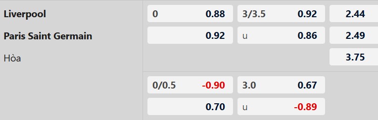 Thông tin tỷ lệ kèo bóng đá Liverpool vs PSG: