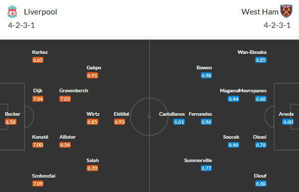 Liverpool đã thắng 2 trận đấu gần nhất tại Ngoại hạng Anh với tỷ số 1-0 (thắng Nottingham, Sunderland) và họ sẽ bước vào màn tiếp đón West Ham với mục tiêu giành chiến thắng thứ ba liên tiếp mà không để thủng lưới, lần đầu tiên kể từ ba trận đấu đầu Slot dẫn dắt câu lạc bộ mùa giải trước. Đội bóng vùng Merseyside tự tin sẽ giành trọn 3 điểm, bởi họ chỉ thua 1 trong 19 lần đối đầu gần nhất với West Ham tại giải Ngoại hạng Anh (thắng 15, hòa 3).