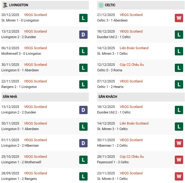 - Trên sân nhà, Livingston thắng 2, thua 5 trước Celtic.