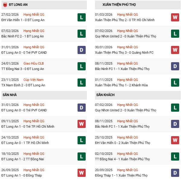 Thống kê phong độ Long An vs Phú Thọ: