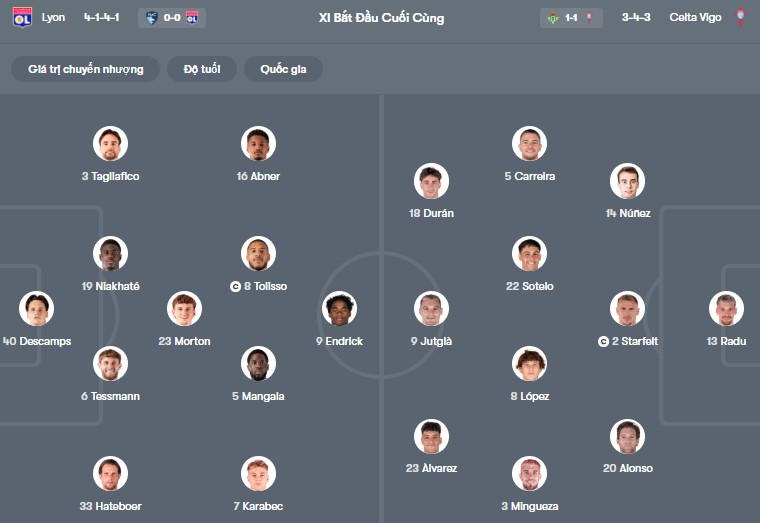 Đội hình dự kiến Lyon vs Celta Vigo: