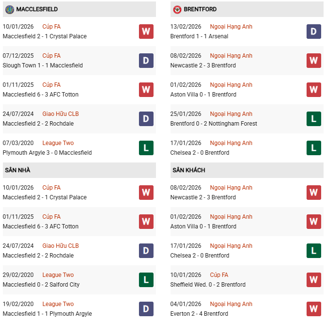 Macclesfield Town thắng 2 và thua trong 4 lần gần nhất gặp Brentford.