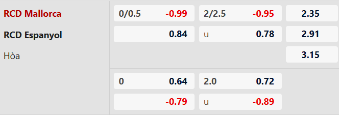 Thông tin tỷ lệ cược Mallorca vs Espanyol: