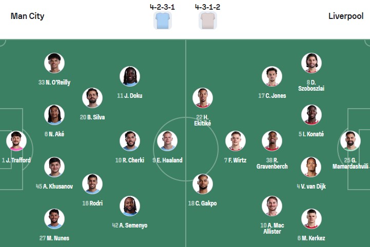 Đội hình dự kiến Man City vs Liverpool: