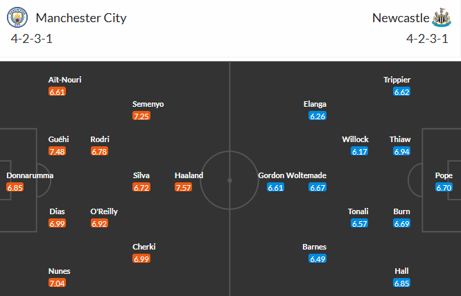 Đội hình dự kiến Man City vs Newcastle: