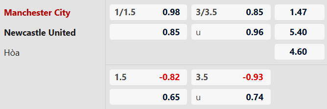 Soi kèo châu Á Man City vs Newcastle: