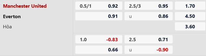 Thông tin tỷ lệ kèo bóng đá Man Utd vs Everton: