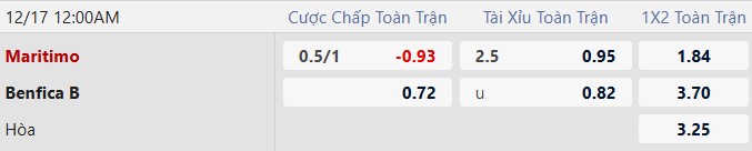 Thông tin tỷ lệ bóng đá Maritimo vs Benfica B: