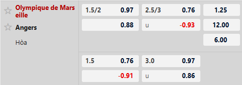Thông tin tỷ lệ bóng đá Marseille vs Angers: