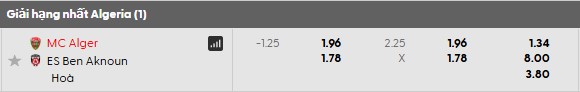 Thông tin tỷ lệ MC Alger vs Ben Aknoun:
