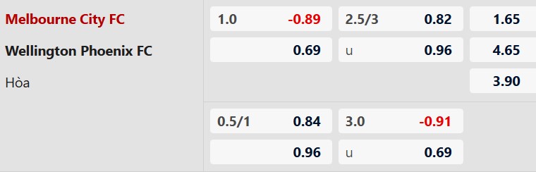 Thông tin tỷ lệ Melbourne City vs Wellington: