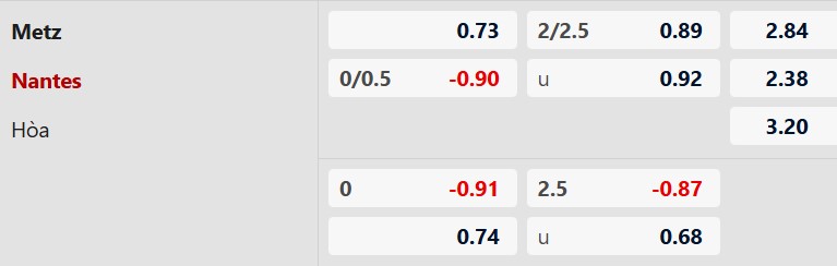 Thông tin tỷ lệ bóng đá Metz vs Nantes: