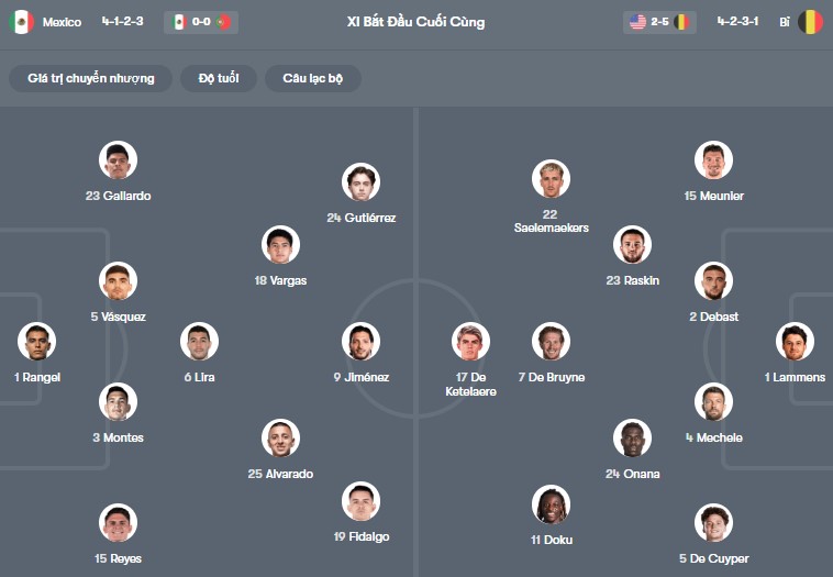 Thông tin lực lượng Mexico vs Bỉ: