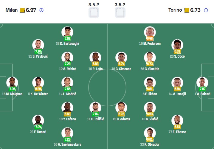 Đội hình dự kiến Milan vs Torino: