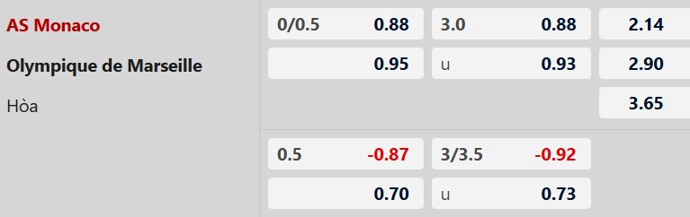 Thông tin tỷ lệ kèo bóng đá Monaco vs Marseille: