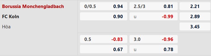 Thông tin tỷ lệ cược Monchengladbach vs FC Koln: