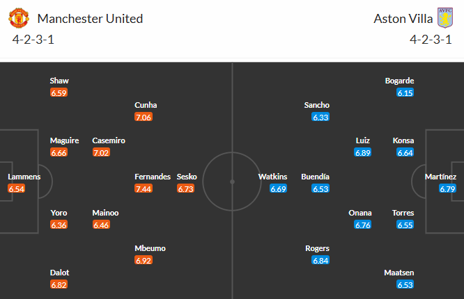 Đội hình dự kiến MU vs Aston Villa: