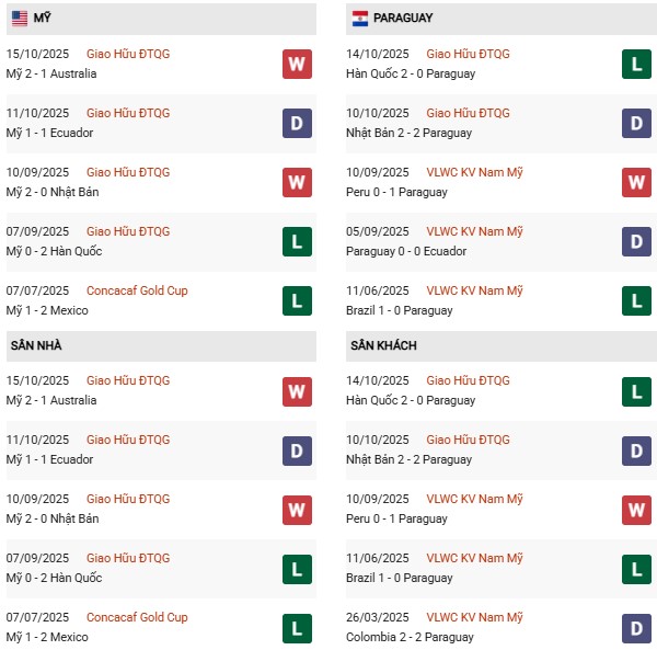 - Mỹ thắng 3, thua 2 trong 5 trận gặp Paraguay gần đây.