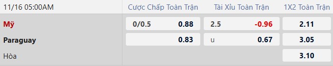 Soi kèo tài xỉu Mỹ vs Paraguay: