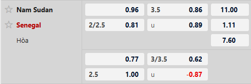 Thông tin tỷ lệ kèo Nam Sudan vs Senegal: