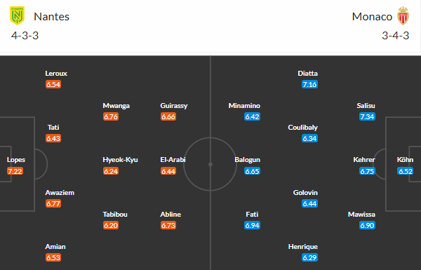 Đội hình dự kiến Nantes vs AS Monaco: