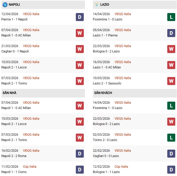- Trên sân nhà, Napoli thắng 6, thua 3 trước Lazio.