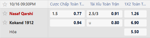 Thông tin tỷ lệ bóng đá Nasaf Qarshi vs Kokand: