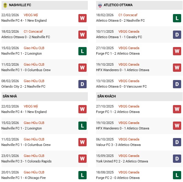 Thống kê phong độ Nashville vs Atletico Ottawa: