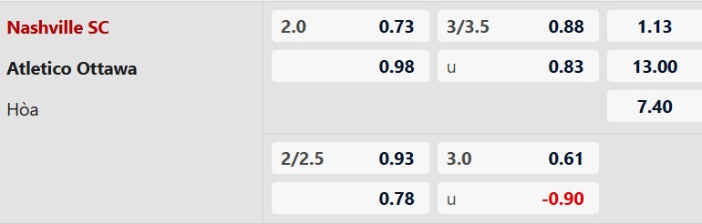 Thông tin tỷ lệ kèo Nashville vs Atletico Ottawa: