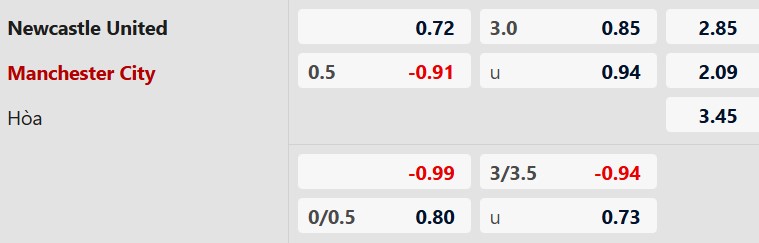 Soi kèo châu Á Newcastle vs Man City: