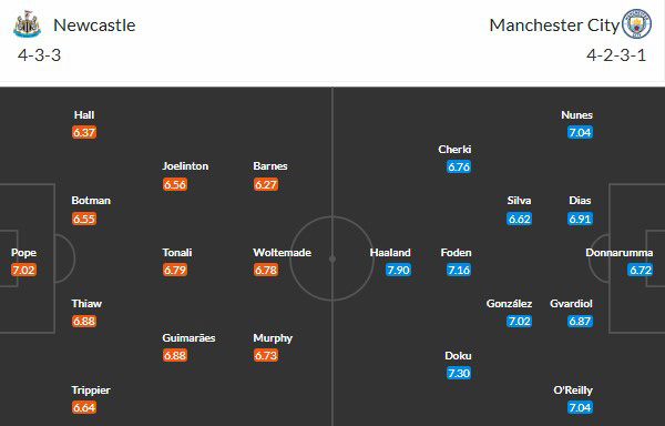 Đội hình dự kiến Newcastle vs Man City:
