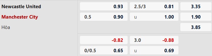 Thông tin tỷ lệ kèo bóng đá Newcastle vs Man City: