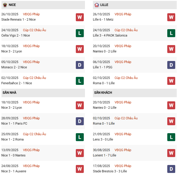 - Trên sân nhà, Nice thắng 3, thua 1 trước Lille.