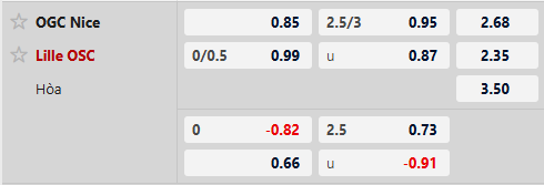 8 trận gần đây trên mọi giải đấu, Nice vừa ghi bàn vừa thủng lưới. Hệ quả kéo theo: 7 cuộc chơi khép lại mà có không dưới 3 tình huống lập công. Kịch bản tương tự còn xuất hiện ở 5/7 màn chạm trán mới nhất giữa đôi bên cùng 3/5 chuyến làm khách đã qua mùa này của Lille. Với dự đoán Lille không thua thì trận tới càng hứa hẹn sôi nổi.