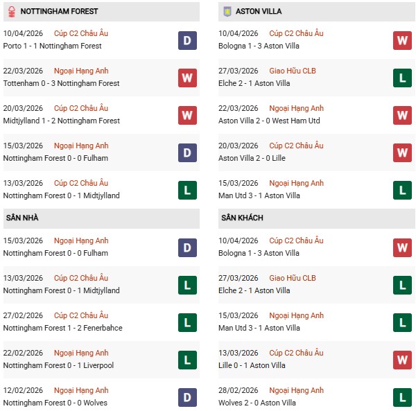 Nottingham Forest đang chơi chắc chắn và có lợi thế sân nhà, trong khi Aston Villa dù mạnh hơn nhưng lại không quá ổn định khi làm khách.