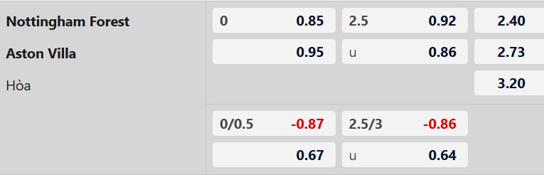 Thông tin kèo bóng đá Nottingham vs Aston Villa: