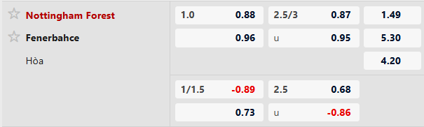 Thông tin tỷ lệ kèo Nottingham vs Fenerbahce: