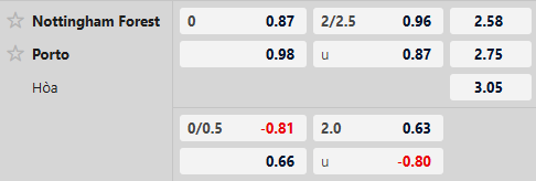 Thông tin kèo bóng đá Nottingham vs Porto: