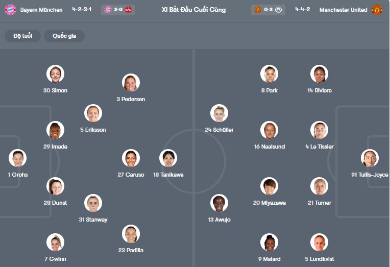 Đội hình dự kiến Nữ Bayern Munich vs Nữ MU: