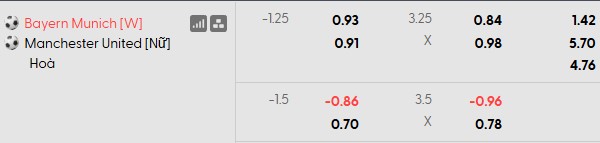 Thông tin tỷ lệ cược Nữ Bayern Munich vs Nữ MU: