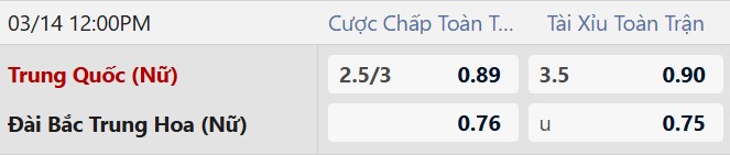 Soi kèo tài xỉu Nữ Trung Quốc vs Nữ Đài Bắc Trung Hoa: