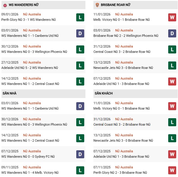 Thống kê phong độ Nữ Western Sydney vs Nữ Brisbane: