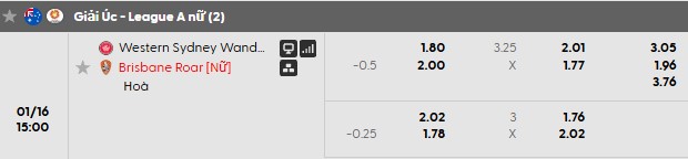 Thông tin tỷ lệ kèo Nữ Western Sydney vs Nữ Brisbane:
