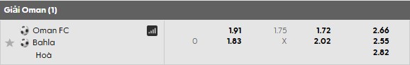 Thông tin tỷ lệ cược Oman FC vs Bahla: