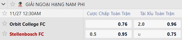 Thông tin tỷ lệ Orbit College vs Stellenbosch: