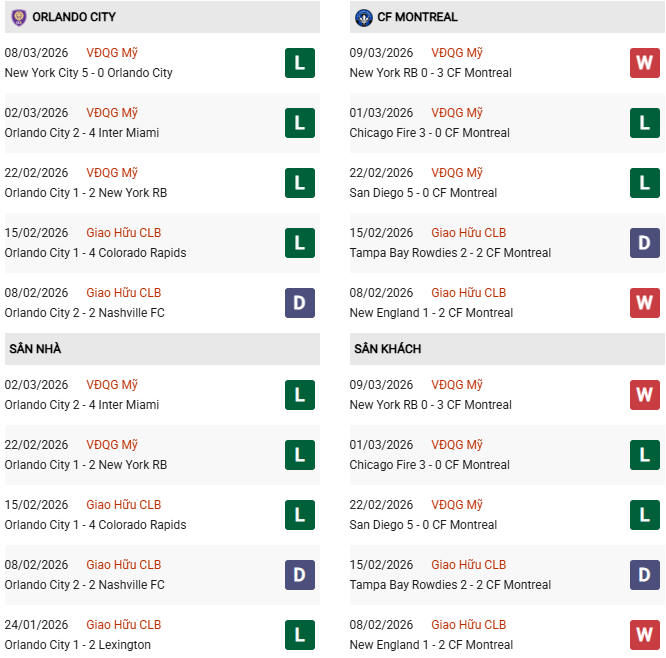 - Orlando City thắng 3, hòa 4, thua 3 trong 10 trận gặp CF Montreal gần đây.