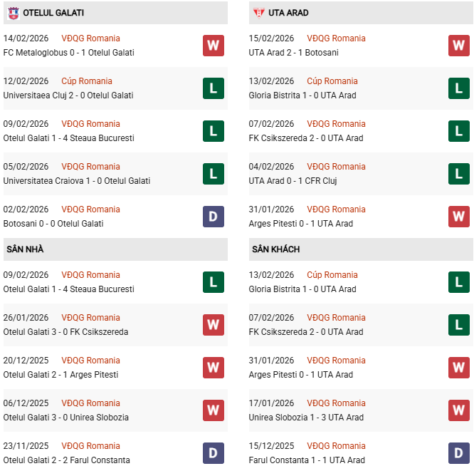 - Trên sân nhà, Otelul Galati thắng 2, hòa 2 trước UTA Arad.